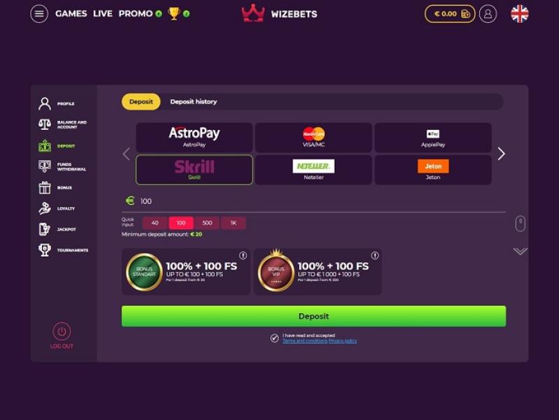 Обзор казино Wizebets