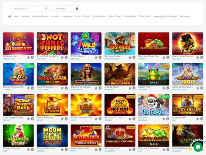 Один из способов просмотра библиотеки — по студии, другой — по категории. Здесь есть джекпоты, скретч-карты, настольные игры, видеобинго, видеопокер и, наконец, видеослоты, а также отдельный раздел с новинками.
