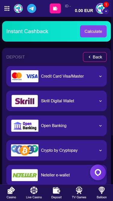 Живое казино: Dead or Alive: Saloon, BlackJack, Roulette, Poker, Sweet Bonanza CandyLand, Monopoly Big Baller, Crazy Coin Flip, Crazy Time, Blackjack Lobby, Roulette Lobby, Casino Hold'em, Blackjack Lobby, Roulette Lobby, Mega Roulette, Gonzo's Treasure Hunt, Mega Wheel, Monopoly Live, Lightning Blackjack, Craps, Fan Tan, Infinite Blackjack, Sidebet City, Mega Ball, Football Studio, Cash or Crash, BOOM City, Baccarat Lobby, Mega Sic Bo, Game Shows Lobby Live, Blackjack Lobby Live, Roulette Lobby Live, Poker Lobby Live, Baccarat & Sicbo Lobby Live, Blackjack Lobby, Baccarat Lobby, Roulette Lobby, Poker Lobby, Vivo Gaming Lobby, Baccarat & Sic Bo Lobby и многое другое.