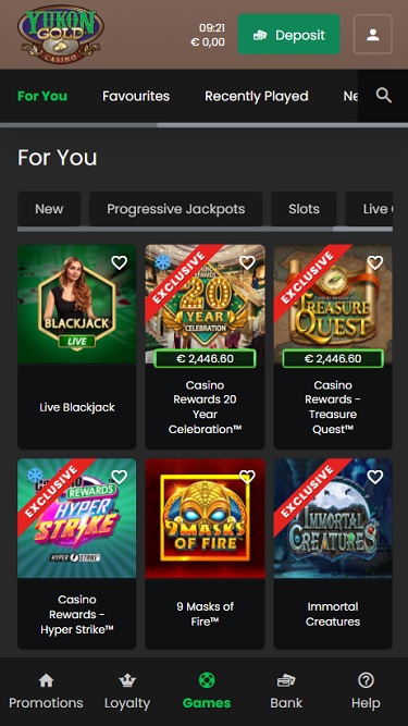 Казино Yukon Gold работает на платформе Microgaming, Evolution Gaming, Rabcat, Triple Edge Studios, Northern Lights Gaming, Stormcraft Studios, Switch Studios, Electric Elephant Games, All41 Studios, Gameburger Studios, Pulse 8 Studios, Neon Valley Studios, SpinPlay Games, Real Dealer Studios, GONG Gaming, On Air Entertainment, Buck Stakes Entertainment, Games Global, Old Skool Studios, Foxium, Just For The Win, PearFiction Studios, Slingshot Studios, Fortune Factory Studios, Crazy Tooth Studio, Alchemy Gaming, Snowborn Games, Gold Coin Studios, Half Pixel Studios, Eurostar Studios and Aurum Signature Studios , что позволяет игрокам получить доступ к сотням игр через её обширную платформу. Доступ к казино возможен как через веб-платформу, так и через загружаемый программный клиент, который устанавливает казино и игры непосредственно на ваш компьютер. Между двумя платформами нет никакой разницы, и игроки могут выбрать ту, которая им больше нравится.Blackjack