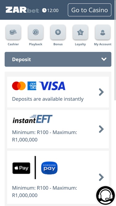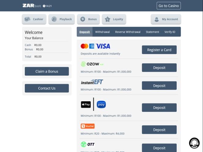 В разделе оплаты представлены такие варианты, как платежные карты, Apple Pay, подарочные карты, ваучеры, банковский перевод, а также криптовалютные платежи. Помимо южноафриканского ранда , игроки могут совершать платежи популярными цифровыми монетами, включая Bitcoin и Litecoin.