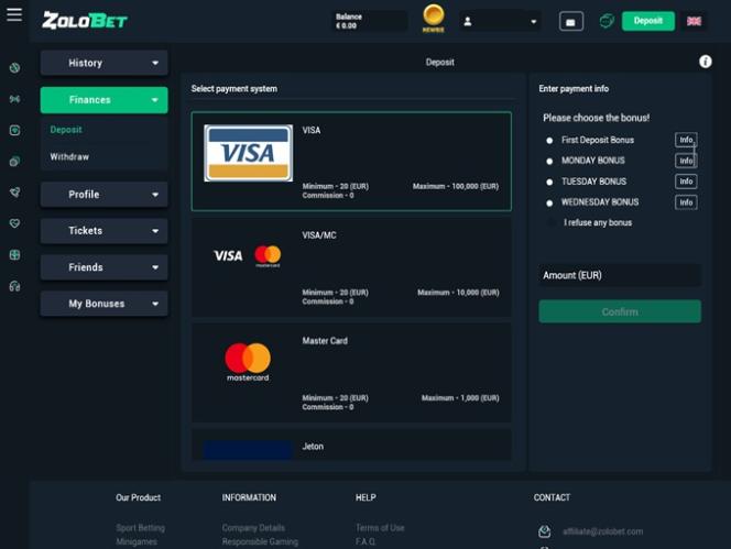 Конечно, традиционные игры казино — не единственное, чем вы можете здесь заняться. В казино ZoloBet также есть отдельный раздел ставок на спорт , где вы можете делать ставки на различные спортивные и киберспортивные события по всему миру до начала матчей или во время игры в режиме реального времени. Букмекерская контора очень хорошо проработана и предлагает множество вариантов для игры, позволяя вам разрабатывать стратегии на свой вкус.