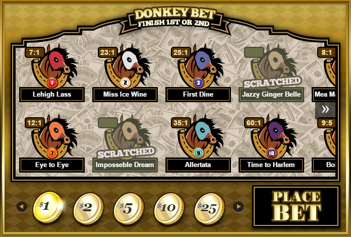 Возвращаясь к обычным скачкам, игрок не завален бесконечной статистикой, как это было бы в Racing Form. На самом деле, ему вообще ничего не показывают. Только имена лошадей и текущие коэффициенты на победу каждой лошади. Это так же просто, как старые игры в скачки Дерби в Вегасе (несколько таких игр до сих пор существуют в казино MGM и D), за исключением того, что есть больше способов делать ставки. Более серьезные игроки могут нажать на «предварительный просмотр скачки», чтобы посмотреть прямую трансляцию с ипподрома, включая информацию о различных пулах ставок, снятых с забега лошадях и других вещах, которые интересуют серьезных любителей ставок на скачках.