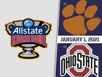 Полуфинал плей-офф студенческого футбола 2020–2021 годов в рамках Sugar Bowl проводится при поддержке Allstate. Долгожданная футбольная битва состоится в пятницу, 1 января 2021 года, в 20:00 по восточному времени. В этом матче между командами Clemson Tigers (№2) и Ohio State Buckeyes (№3) примут участие Mercedes-Benz Superdome, расположенный в Новом Орлеане, штат Луизиана, на домашней арене команды New Orleans Saints из NFL. Игра будет транслироваться по национальному телевидению каналом ESPN, или её можно будет посмотреть онлайн через приложение ESPN.