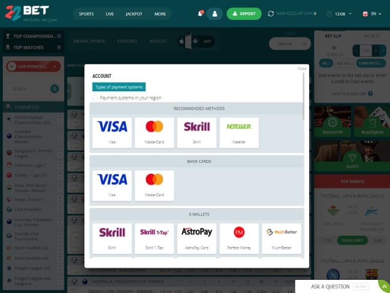 - По вопросам оплаты пишите на электронную почту: processing@22bet.com