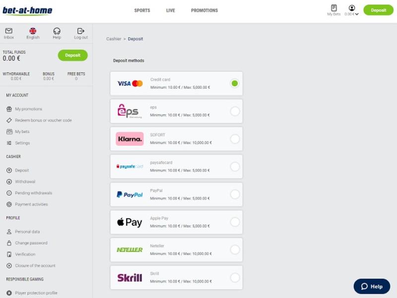 Варианты банковских операций в Bet-at-home