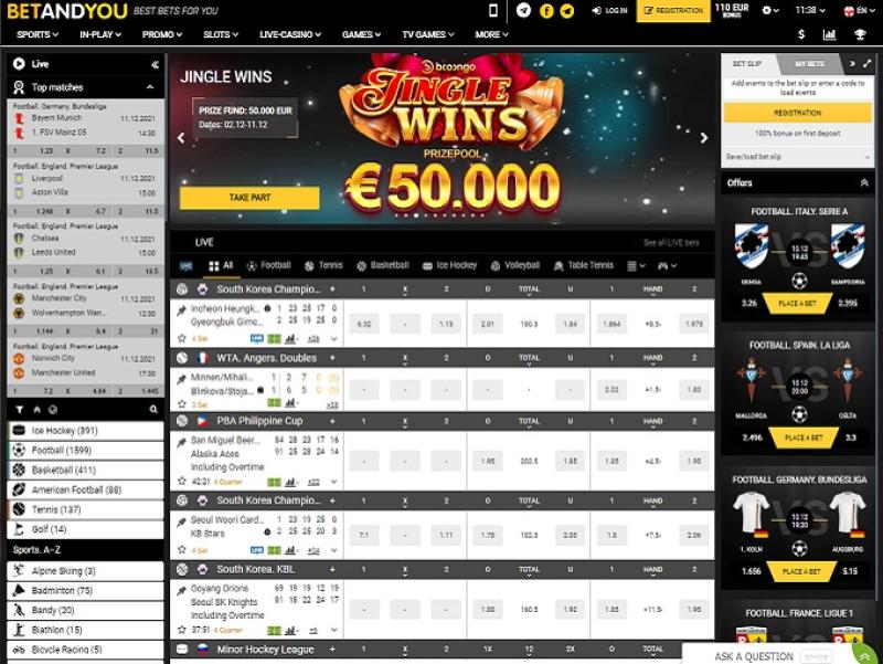 Запущенная в 2010 году, Betandyou — это огромная платформа для ставок на спорт, ориентированная в первую очередь на игроков из Канады, Финляндии, Индонезии, Малайзии, Филиппин, Украины, Вьетнама и Германии. Она выдержала испытание временем и завоевала огромную аудиторию, предлагая широкий выбор вариантов ставок на спорт, различные бонусы, события для участия и даже некоторые азартные игры.