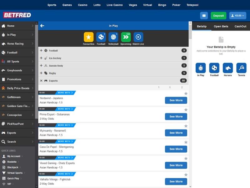 Игроки найдут здесь широкий выбор видов спорта, а также множество различных типов ставок на каждое отдельное событие. Среди представленных видов спорта: # Pick Your Punt, американский футбол , австралийский футбол, бейсбол , баскетбол, бокс, крикет, велоспорт, дартс, киберспорт, американский футбол, гэльский футбол, гольф, собачьи бега, гандбол, скачки, хёрлинг, хоккей на льду, специальные предложения лотереи, автоспорт, следующие отмененные события, политика, гребля, регби-лига, регби-юнион, снукер, специальные предложения, теннис, сегодняшние повышения коэффициентов, UFC/MMA, виртуальный спорт, волейбол и другие.