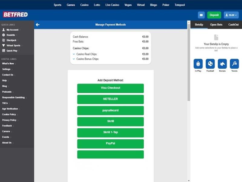 Варианты банковских операций в BetFred Casino