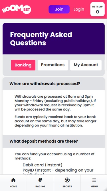 Хотя BoomBet не предлагает самый широкий выбор способов оплаты, доступные методы популярны среди игроков из Австралии и Новой Зеландии, поэтому вы, скорее всего, найдете подходящий вариант для своих нужд.