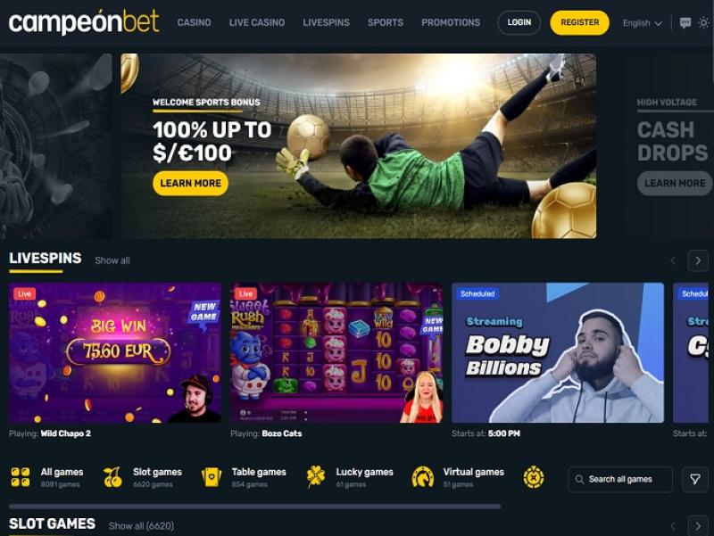 Помимо услуг по ставкам на спорт, Campeon Bet также предлагает отличное онлайн-казино с такими играми, как: покер, баккара, блэкджек, хай-лоу, ракетка, рулетка, слоты, плинко, скретч-кости, настольные игры, видеобинго, крэпс, видеопокер, видеослоты и другие настольные игры. Также есть возможность играть в казино с живыми дилерами. Это отличные варианты для тех, кто хочет иметь доступ к классическим играм казино при размещении ставок на спорт. Рассматривайте эту букмекерскую контору/казино как универсальный магазин для всех ваших потребностей и желаний в сфере развлечений, связанных со ставками.