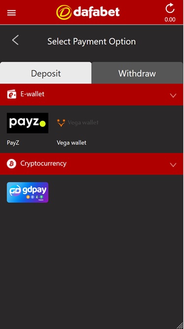Dafabet предлагает игрокам возможность использовать различные современные и традиционные способы оплаты как для пополнения счета, так и для вывода средств, включая кредитные карты, дебетовые карты, предоплаченные карты, банковские переводы и электронные кошельки . Компания также принимает несколько криптовалют, поэтому те, кто предпочитает более анонимный и безопасный способ оплаты, останутся довольны.
