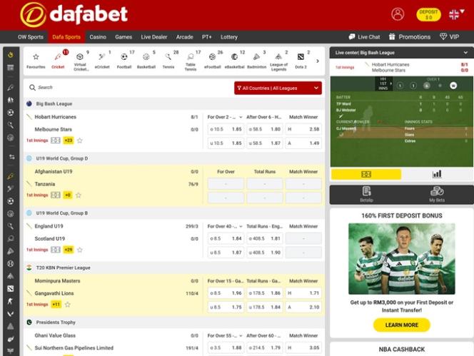 Важно отметить, что практически на любой вид спорта в букмекерской конторе можно делать ставки как до начала матчей, так и во время игры в режиме реального времени. Dafabet предлагает возможность делать ставки в режиме реального времени, поэтому вы всегда можете следить за текущими спортивными событиями, не планируя заранее, и разрабатывать стратегии по своему усмотрению.
