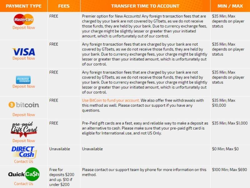 Варианты банковских операций в GTbets Casino