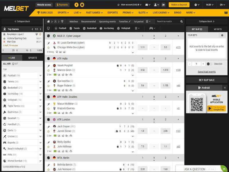 Обзор спортивной книги Melbet Sports