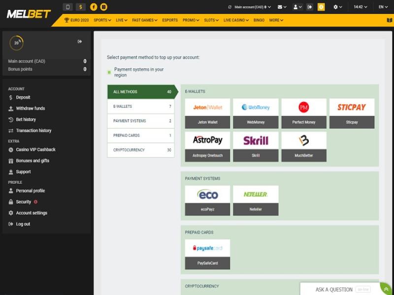 Варианты банковских операций в MELBET Casino