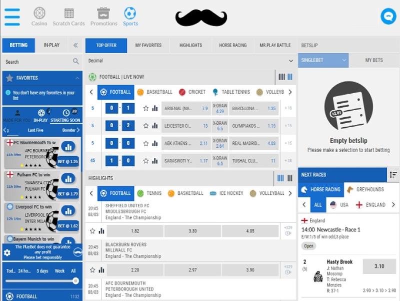 Этот новый и захватывающий онлайн-провайдер игр, казино и букмекерская контора стремится впечатлить любителей ставок на спорт по всему миру. Бренд принадлежит и управляется компанией Marketplay LTD, которая регулируется законодательством Мальты. Азартные игры на этом сайте предоставляются и управляются компанией Aspire Global International LTD. Страница букмекерской конторы Mr. Play отличается лаконичным и удобным интерфейсом, а также всеми функциями, которые можно ожидать от первоклассного сервиса ставок на спорт.
