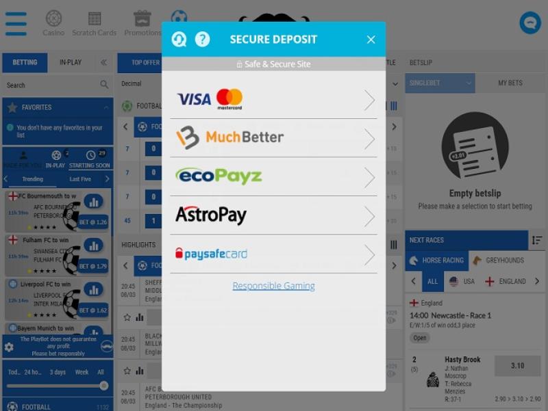 Способы пополнения счета: Visa, Mastercard, Skrill, Neteller, Much Better и Eco Payz. Все способы пополнения должны обеспечивать немедленное поступление средств.
