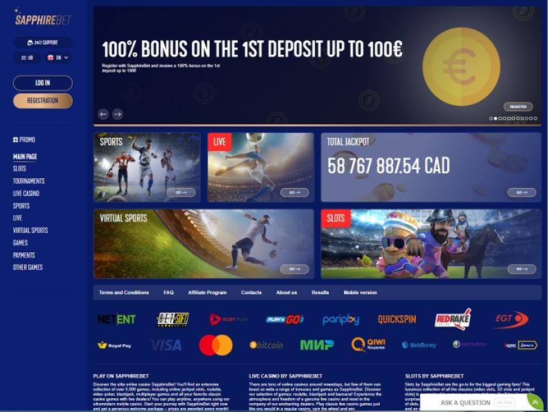 Компания Sapphirebet, принадлежащая и управляемая Hermes Consulting, запустила свой букмекерский сайт и казино в 2018 году по лицензии на онлайн-игры Кюрасао. На первый взгляд, этот бренд представляет собой чрезвычайно перспективного букмекера, отвечающего многим требованиям игроков: поддержка более 60 языков, конкурентоспособные коэффициенты на национальные сборные, акции, специально ориентированные на букмекерскую контору, и в целом визуально привлекательный веб-дизайн.