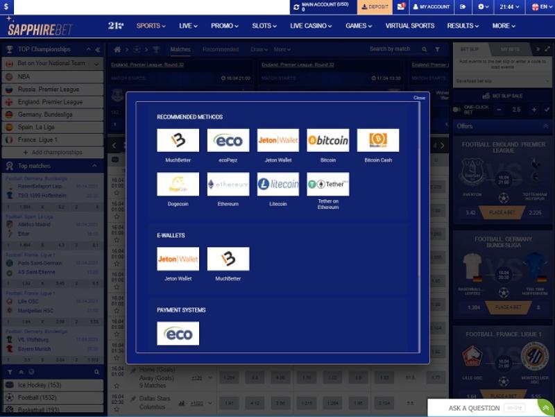Техническая поддержка: support-en@sapphirebet.com