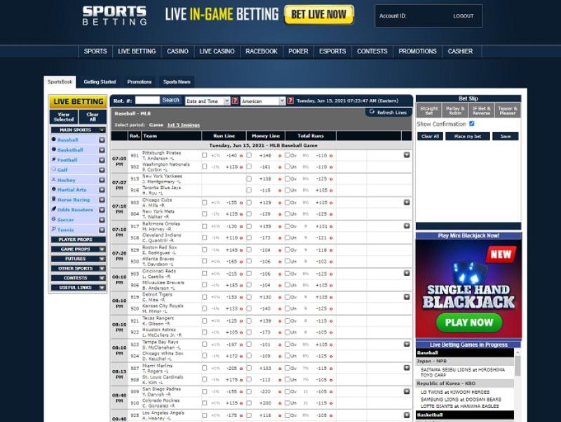 Ставки на спорт довольно стандартны, когда речь идёт о ставках на разницу очков. Любая распространённая ставка на популярный вид спорта или лигу, вероятно, будет иметь линию в 20 центов. Приятным исключением являются ставки на разницу очков, денежную линию и тотал (больше/меньше) в НХЛ с линией в 10 центов. Ставки на дополнительные исходы или малоизвестные виды спорта, вероятно, будут иметь линию в 30 центов. На момент написания этого обзора бейсбольный сезон ещё не начался, поэтому я не знаю, как там всё устроено. Напоминаем, что минимальное преимущество казино на ставках на разницу очков составляет: