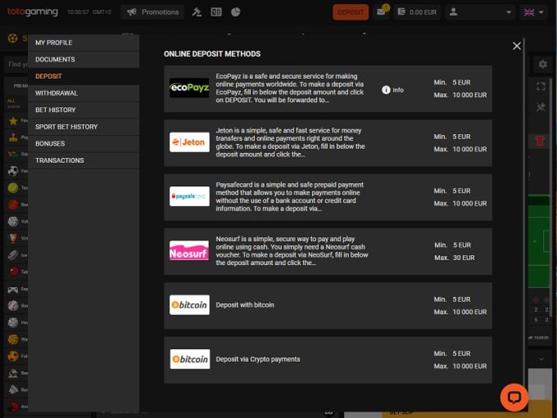 - Внесение депозитов начинается с низкого, удобного для нечастых пользователей лимита, и большинство способов пополнения счета осуществляются мгновенно.