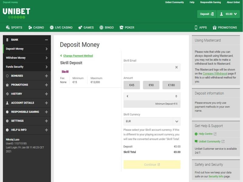Unibet предлагает игрокам множество отличных способов пополнения счета, включая Neteller, Skill, Visa, Mastercard, Paysafe Card и другие. Выплаты на электронные кошельки осуществляются в течение 12 часов, в то время как другие способы могут занять немного больше времени. Unibet надежно выплачивает выигрыши, поэтому вы можете ожидать получения денег вскоре после отправки запроса.