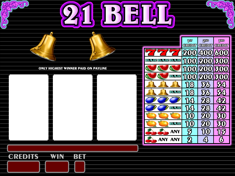Ниже представлено изображение игрового автомата «21 Bell Slot Machine», © 1973. Математический анализ этого автомата можно найти в приложении 5 к моей книге, посвященной игровым автоматам .