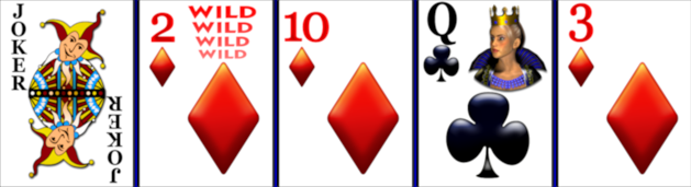 Благодаря наличию пяти вайлдов (четыре двойки и джокер), ваши шансы собрать наилучшую комбинацию и перебить дилера экспоненциально возрастают при игре колодой из 53 карт.