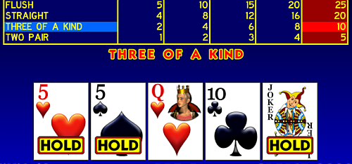 Как и в других играх этого семейства, джокер выступает в роли дикого символа и помогает собрать комбинацию, достаточную для того, чтобы перебить комбинацию дилера. Естественно, это также несколько увеличивает ваши шансы, особенно в наиболее часто выигрывающих комбинациях в нижнем сегменте таблицы выплат.