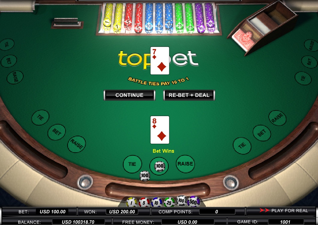 В казино Ace Gaming свою игру Casino War называют просто "War". Они придерживаются строгого правила, не выплачивая бонус за ничью после ничьей. При наличии шести колод преимущество казино составляет 2,88%.