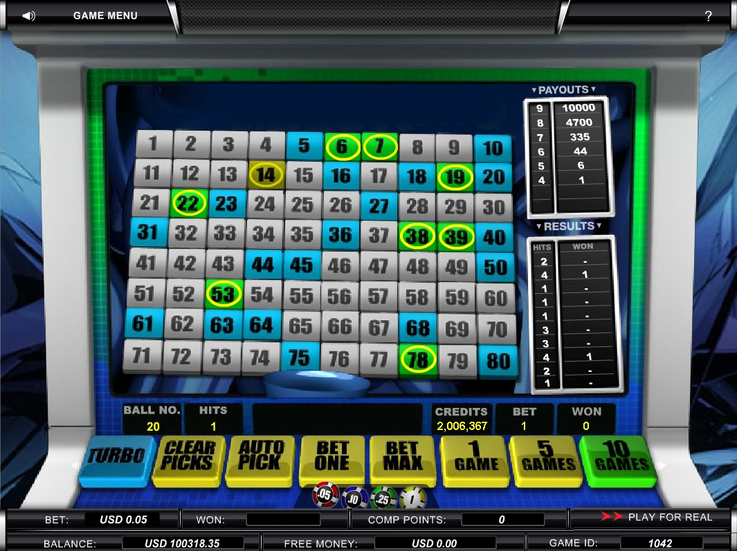 В Ace Gaming есть две игры в кено — обычная и Shockwave. Ниже приведена таблица выплат для обычного кено. В нижней строке показаны коэффициенты выплат. Как видите, наибольший коэффициент выплат составляет 92,96% при выборе трех одинаковых чисел.