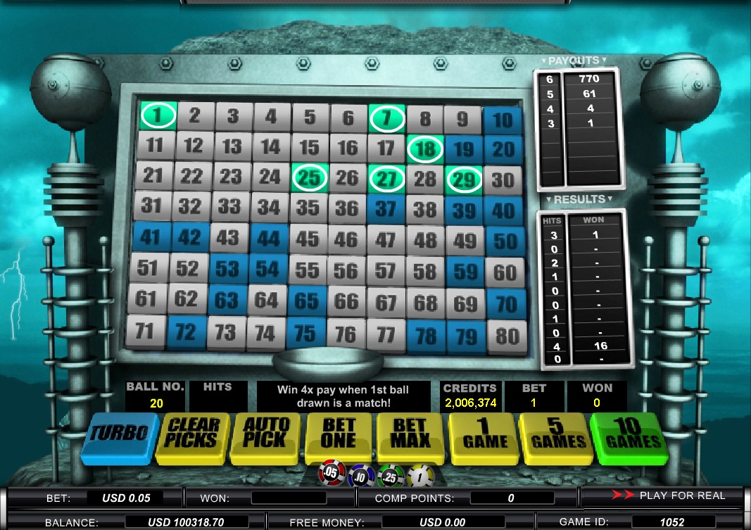 Другая игра в кено называется Shockwave. В ней все выигрыши умножаются на четыре, если первый вытянутый шар попадает в цель. Другими словами, то же самое, что и в Power Keno , за исключением того, что множитель основан на первом вытянутом шаре, а не на последнем. В таблице ниже показана таблица выплат и возврата средств в нижней строке. Как видите, возврат средств не такой высокий, как в обычном кено. Если вы все же хотите сыграть, максимальный возврат составляет 90,57% при выборе двух шаров.