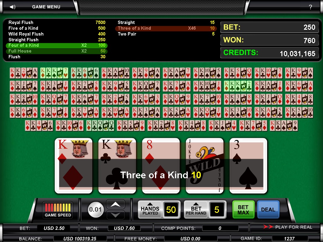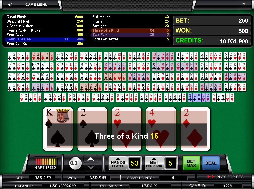 | Jacks or Better | 96.63% | Нет | 1000-50-20-8-5-4-3-2-1 | Нет |