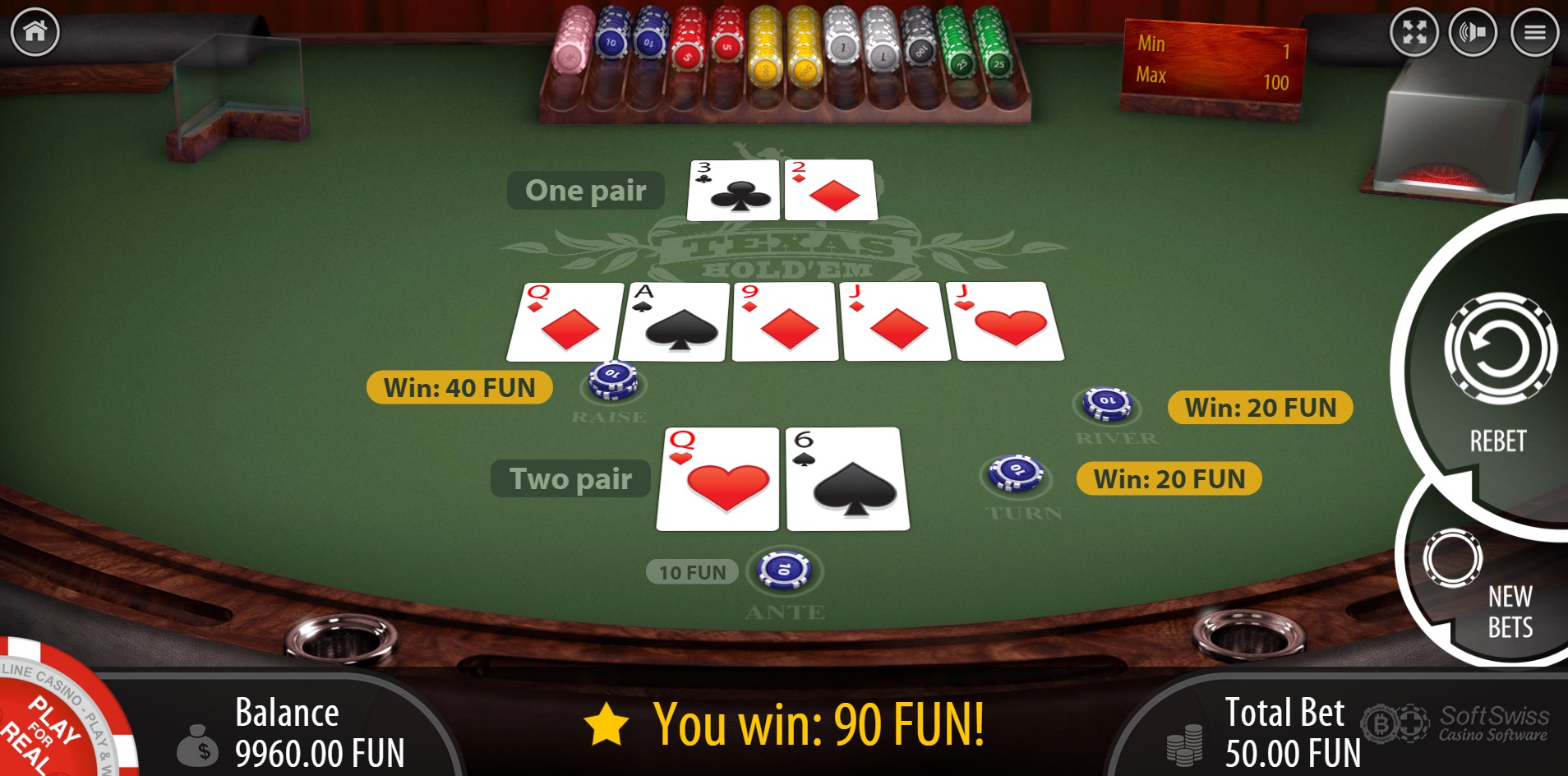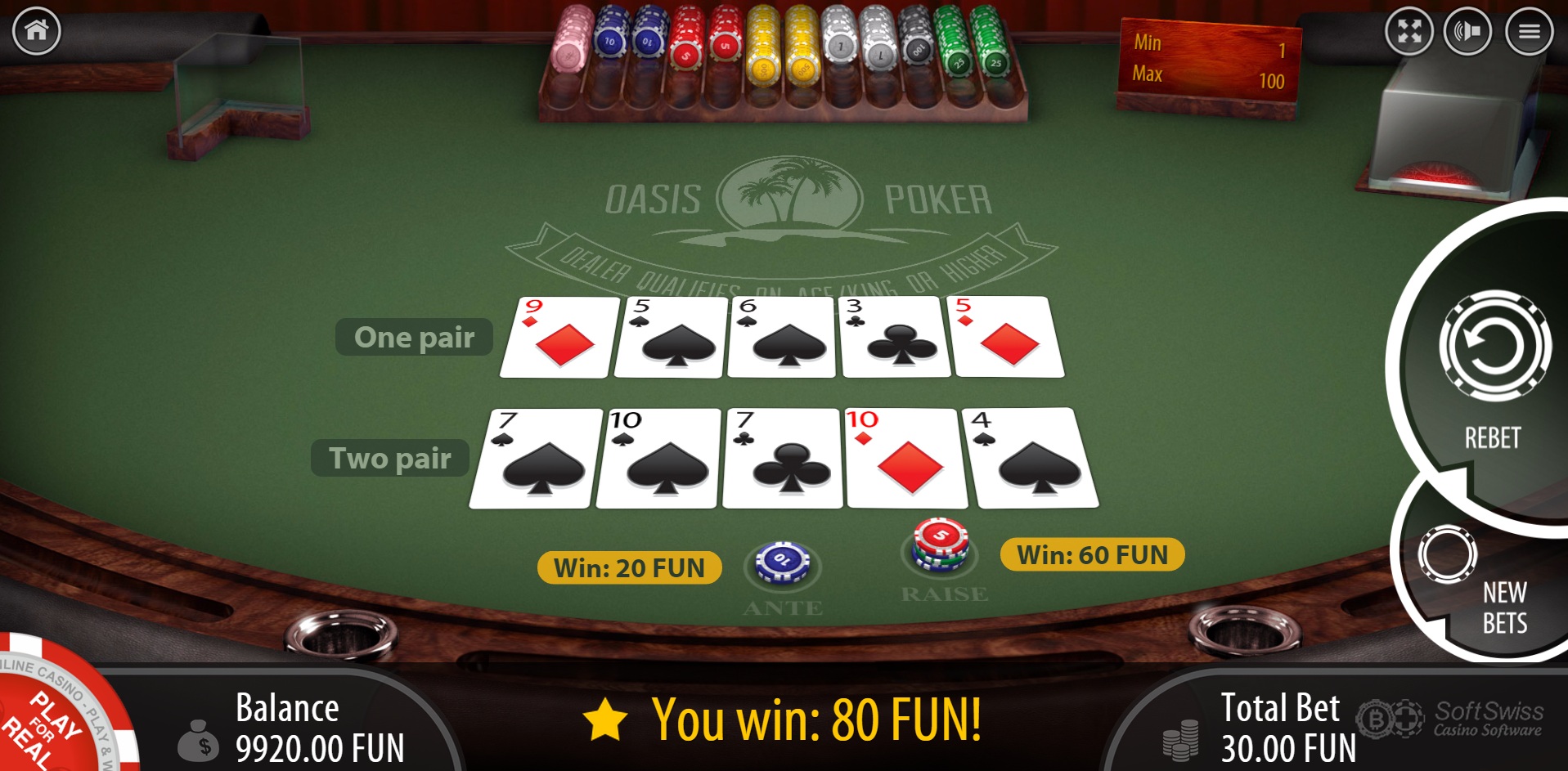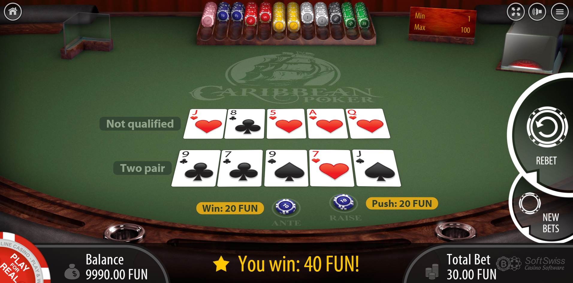 Насколько мне известно, единственная видеопокерная игра от BGaming — это 8-6 Jacks or Better, с процентом возврата 98,39% при условии оптимальной стратегии.