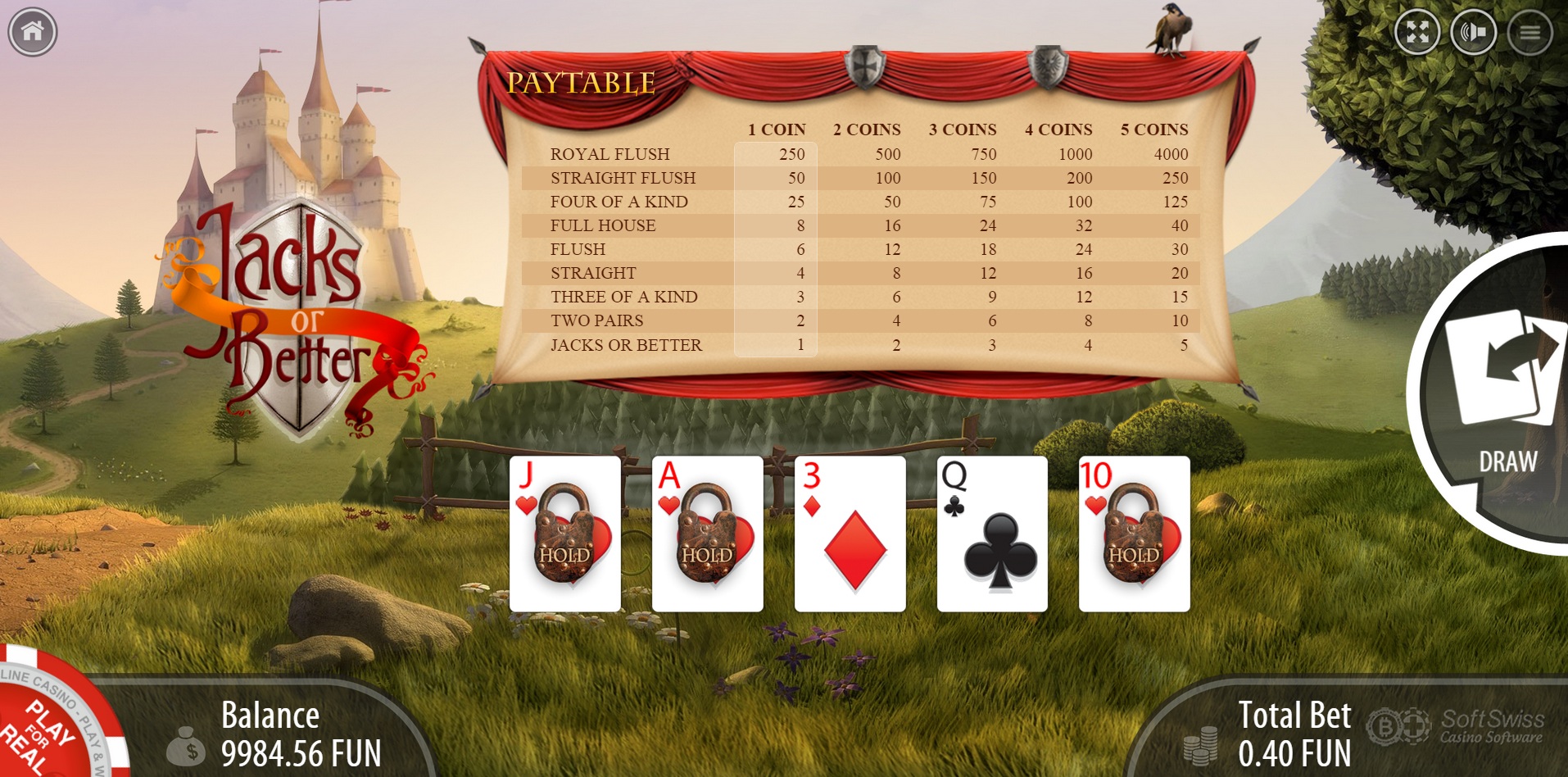Jacks or Better Нет 1-2-3-4-6-8-25-50-800 98.39% Нет