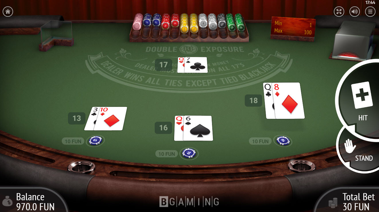 Компания BGaming называет свою игру Three Card Poker Trey Poker. Бонус Ante следует обычной таблице выплат 1-4-5, что дает преимущество казино в 3,37%. Ставка, обычно называемая Pair-Plus, теперь называется Pair Up и имеет таблицу выплат 1-3-6-30-40-100 (включая 100 за мини-роял), что дает преимущество казино в 5,10%.