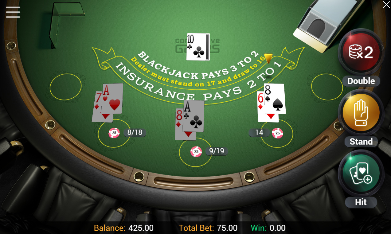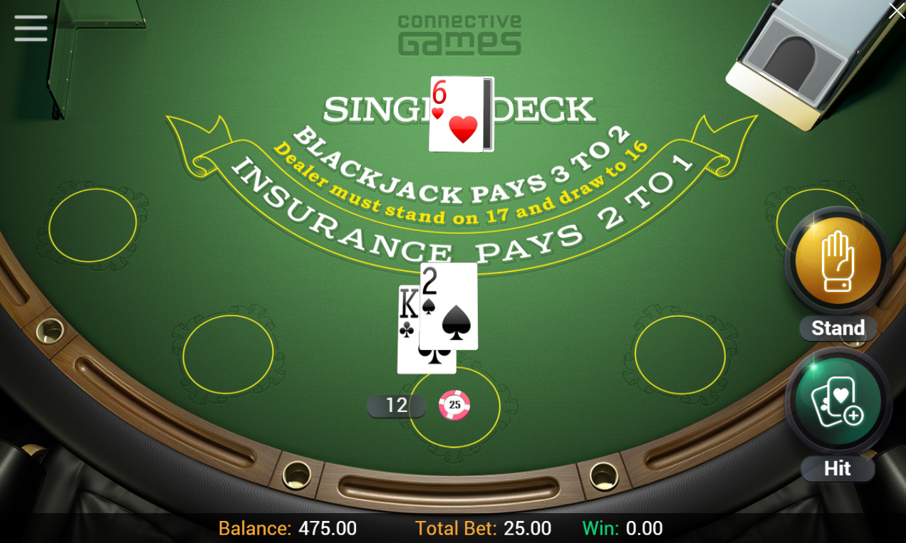 На выбор предлагается четыре варианта блэкджека , но с точки зрения шансов лучше всего подходит игра с одной колодой, с самым низким преимуществом казино в 0,28%. Ниже приведена основная стратегия для игры с одной колодой.