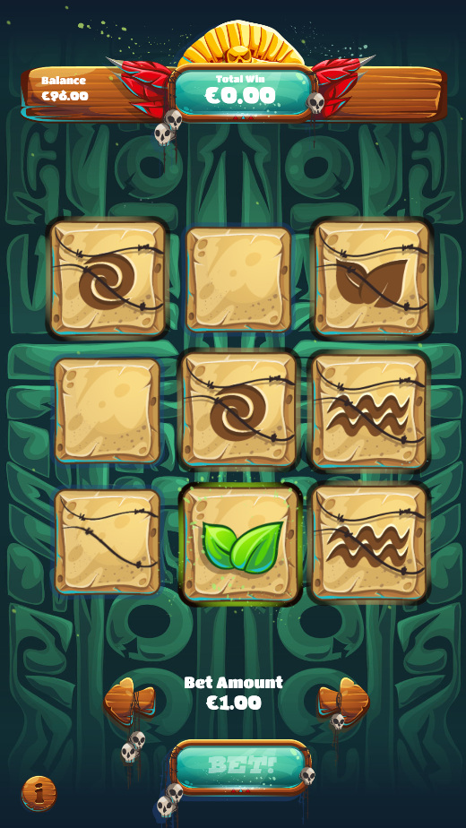 Shaman's Jungle — это игра, похожая на лотерейный билет, где игрок выбирает три клетки на сетке 3x3. Он выигрывает, если определенные символы выпадают 2 или 3 раза. Может показаться, что в ней присутствует элемент свободы воли, и поэтому она не является «слотом» в соответствии с моим определением выше. Однако здесь нет элемента мастерства, и поэтому она достаточно проста, чтобы считаться «слотом». Информация о проценте возврата не предоставляется.