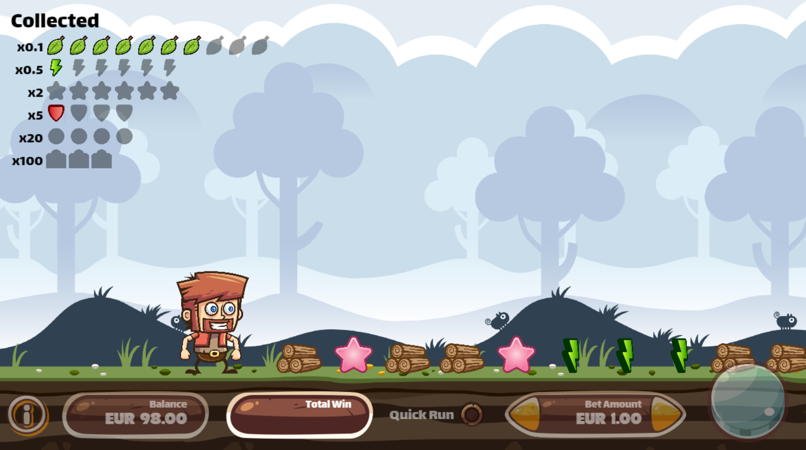 Coin Runner — это, насколько мне известно, умная и уникальная игра. Она напоминает мне Super Mario Brothers для NES, где персонаж бежит и собирает всё, что попадается ему на пути. Если игрок собирает больше определённого количества символов, чем указано, он выигрывает приз согласно таблице выплат. Информация о размере выигрыша не предоставляется.