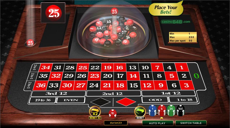 3D-рулетка — колесо с одним зеро. Преимущество казино 2,70%.