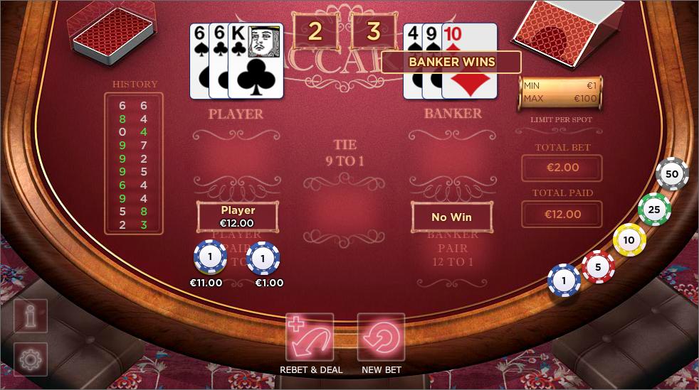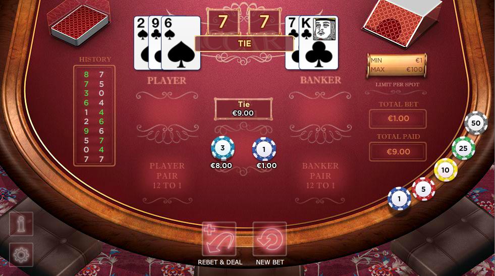Если вам интересно, то если бы в игре были заявлены коэффициенты, указанные на игровом поле, преимущество казино составило бы 4,93% на ничью и 3,86% на пары.