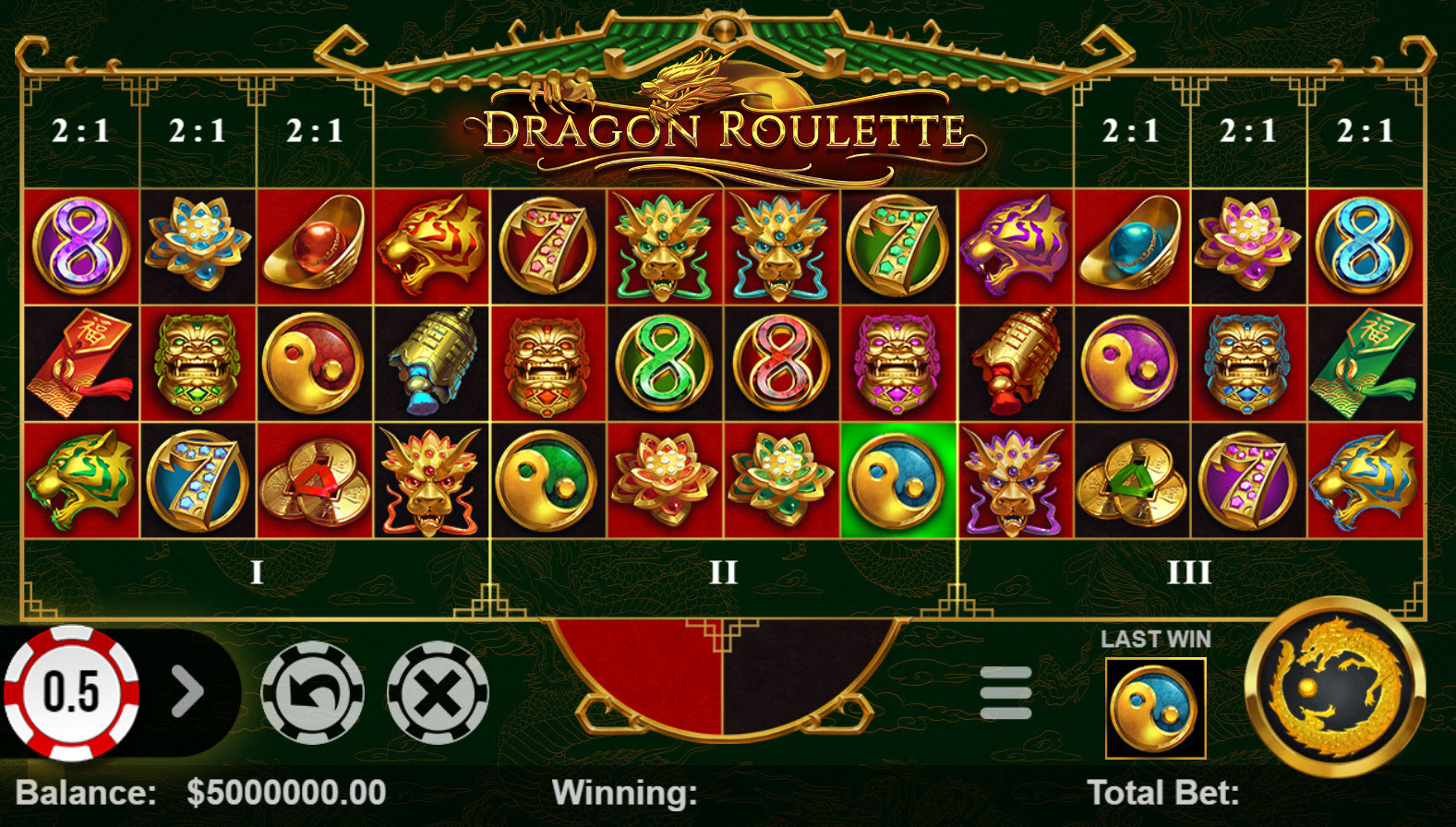 Компания Elysium Studios создала игровой автомат, основанный на рулетке . Вдохновленный одной из самых популярных настольных игр всех времен , рулеткой , Dragon Roulette предлагает игрокам возможность делать ставки на символы, иконки и персонажей, а не на числа. Игра имеет уникальные комбинации, которые дают игрокам возможность играть на предсказанной схеме благодаря запатентованной дополнительной ставке под названием «Dragon Bet».