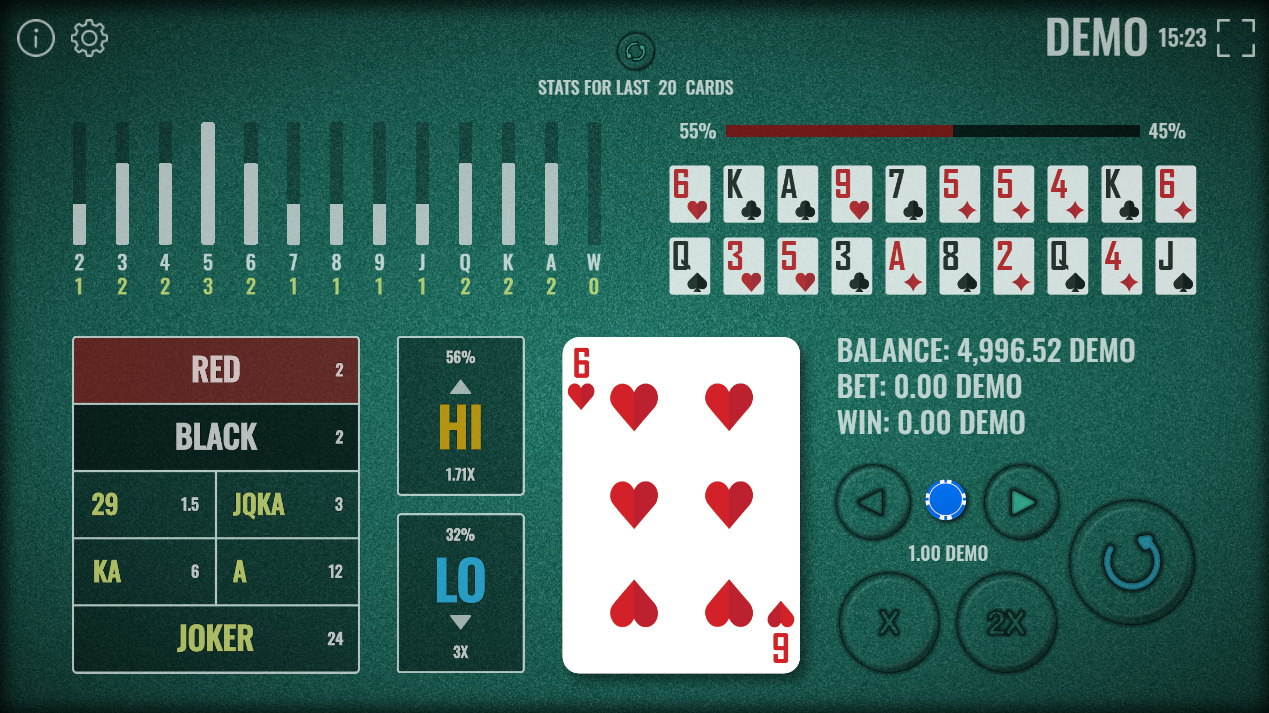 - Игрок может делать различные ставки на следующую вытянутую карту, включая ставки на карту выше или ниже последней вытянутой карты, за исключением ставок, выигрыш по которым невозможен, например, на карту ниже 2.