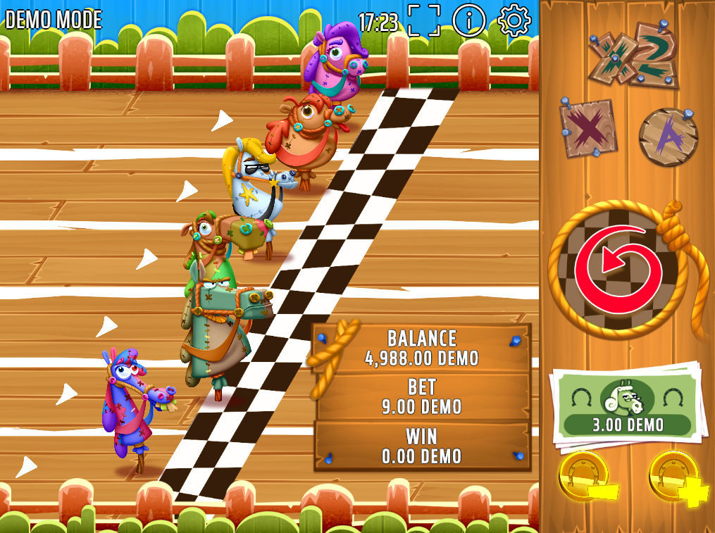 Crazy Horses — это игра в жанре дерби, где игрок делает ставки на исход скачек. Игра очень простая, быстрая и забавная. В каждой скачке участвуют шесть лошадей. Ставка делается только на лошадь-победительницу. Предполагая, что ожидаемая прибыль всегда одинакова, что, судя по справочному файлу, составляет 97%, в следующей таблице показаны выигрыш, вероятность выигрыша и ожидаемая прибыль для всех шести лошадей. Выигрыши рассчитываются по принципу «за одну лошадь».