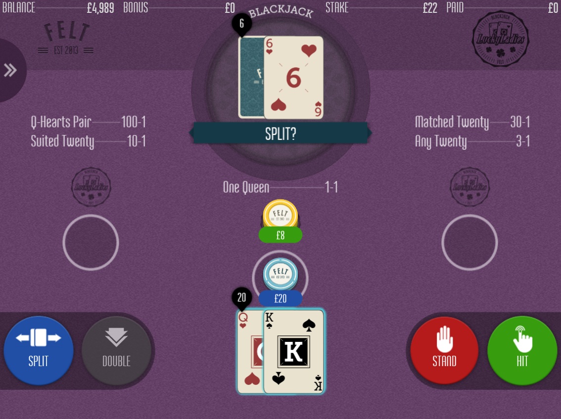 Felt предлагает семь игр в блэкджек. Все они имеют одинаковые базовые правила, которые описаны ниже: