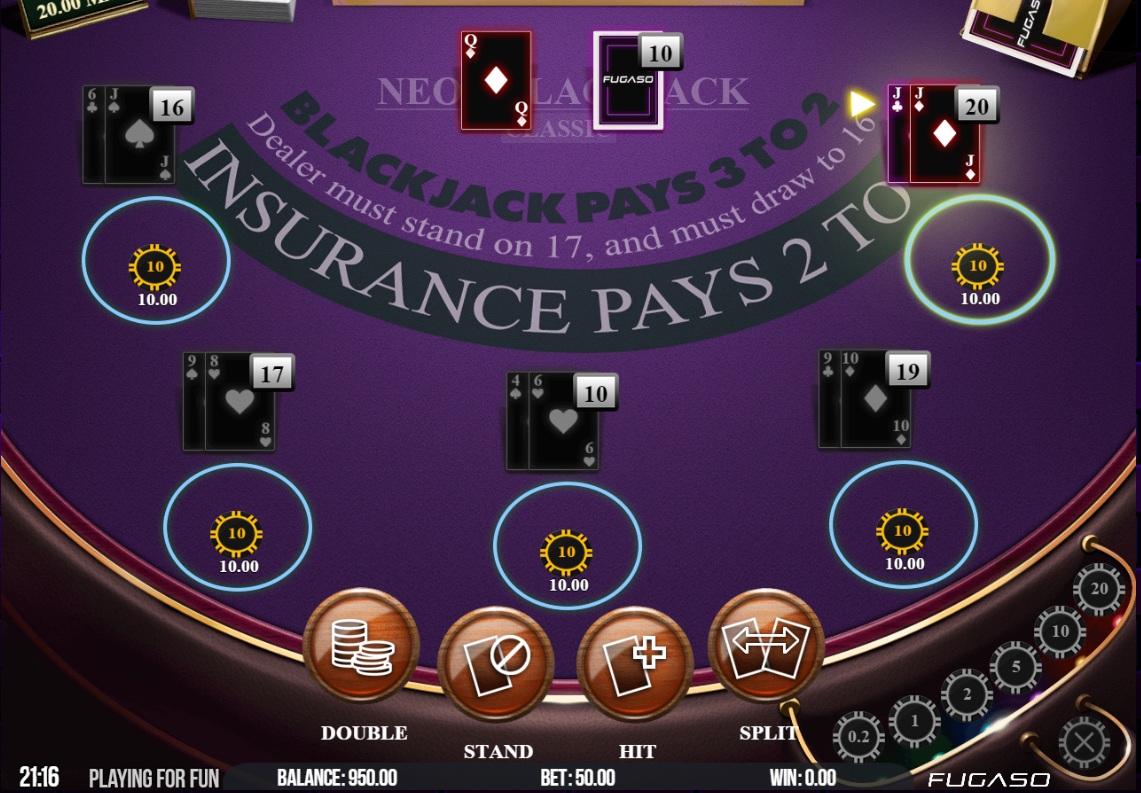 Основные игры — это игры с одной колодой и с восемью колодами. Другие отличия в правилах заключаются в том, что в игре с одной колодой удваивается ставка только при выпадении 10 или 11 очков, а удвоение после разделения колоды не допускается. Тем не менее, шансы на победу выше в версии с одной колодой.