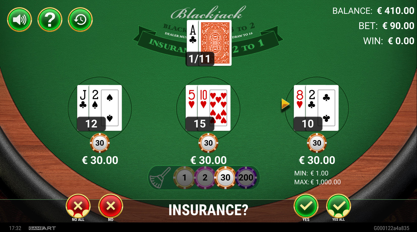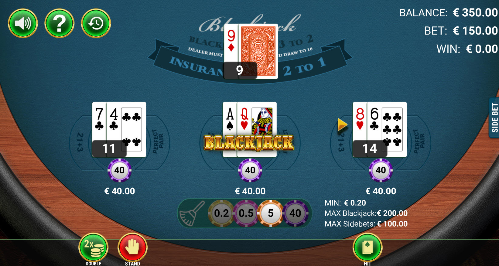 В Gaming Arts есть две игры в блэкджек. В обеих по три места для ставок и одинаковые правила. Главное отличие заключается в том, что за одним столом есть две дополнительные ставки, а за другим — ни одной.