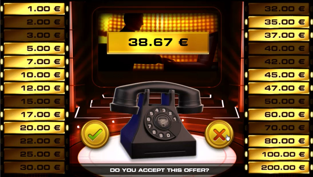 В рулетку «Сделка или нет» играют на колесе с 38 ячейками, где каждое число от 0 до 37 плюс одно обозначено как «Бонус». Если игрок делает ставку в бонусной области, и шарик попадает в бонусную ячейку, он играет в бонусный раунд «Сделка или нет». Также есть указатель, который случайным образом вращается вокруг колеса. Он не имеет никакого назначения, кроме ставок на бонус. Если игрок делает ставку на бонус, шарик попадает в бонусную ячейку, и указатель указывает на бонусную ячейку на колесе, то игрок играет в Супербонус. Это происходит один раз из 1444 вращений, поэтому простите, если я не совсем понимаю, что это значит.