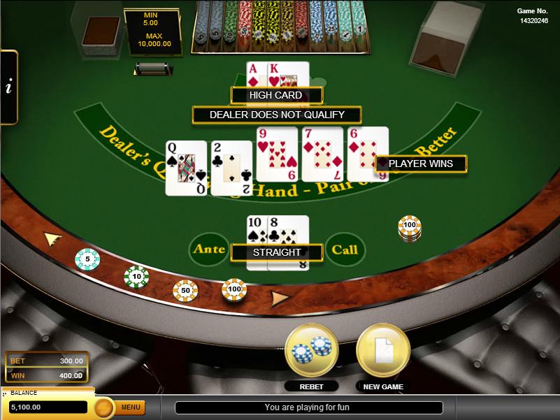 В игре Casino Hold 'Em используется стандартная таблица выплат 1-2-3-10-20-100, преимущество казино составляет 2,16%.
